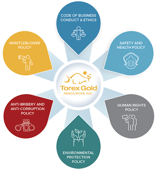 Torex’s Audit Committee is responsible for monitoring compliance with the Code and the Anti-Bribery and Anti-Corruption Policy and overseeing investigations of complaints made under the Whistleblower Policy.